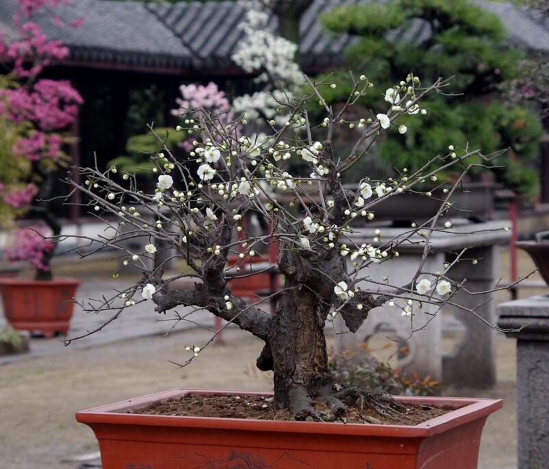 梅花當做盆景來栽種是很適合,特別是紅梅花盆景,梅花屬于落葉小喬木,在每年的春季的時候都會出現落葉,第2年春天到來的時候會重新生長,梅花的高度一般是在三米左右,下面是小編為大家找的紅梅盆景圖片大全欣賞大全