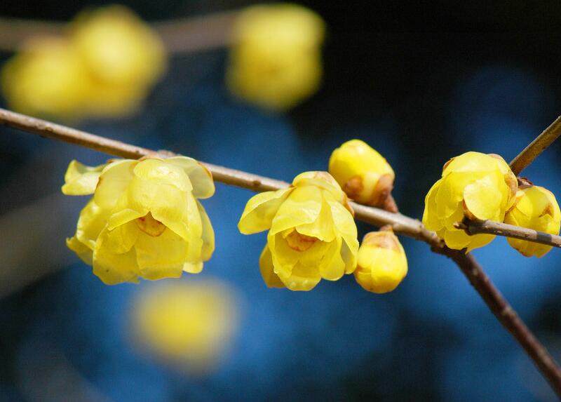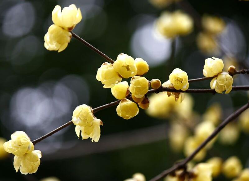 臘梅是植株比較高大的落葉灌木,最高可達4米左右,一般為叢生狀,可耐寒、耐蔭,還可耐旱,適宜種植在土層深厚、排水性良好、微酸性、砂質等土壤里,主要生長于山地,花期在11月到來年3月,是先花后葉的樹種,接下來一起看看臘梅的圖片大全大圖真實。
