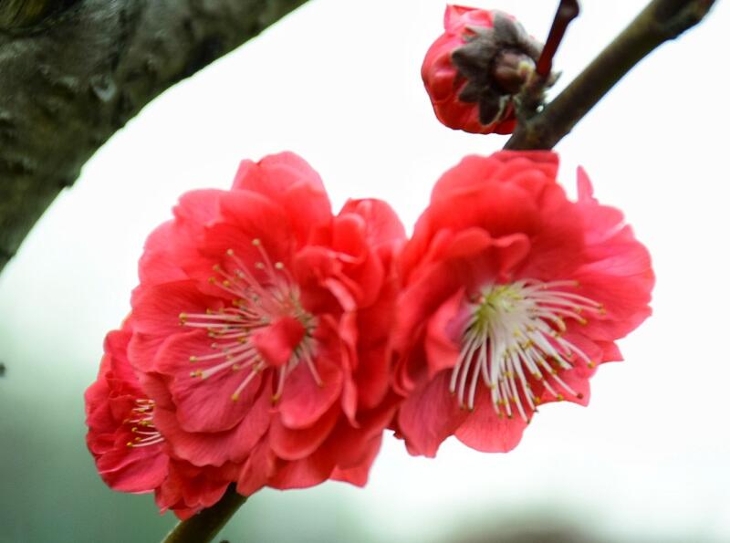 紅色臘梅是落葉小喬木,它的樹形并不高大,枝條呈現出彎曲錯落狀態,帶給人不一樣的美感刺激,在每年三月份左右,美人梅就開始開花,這時候的陽光照射可以讓它的開花效果更好,花朵會持續到四月份左右,開花以后就會慢慢長出嫩紅色的葉子。