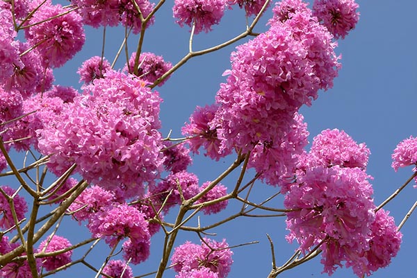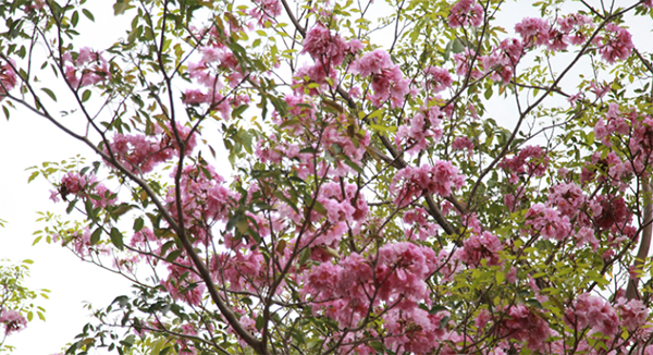 紅花風(fēng)鈴木種植兩三年,幼苗不開花,花期為12月至次年3月,即氣候相對(duì)寒冷時(shí)開花,天氣炎熱時(shí)不開花。