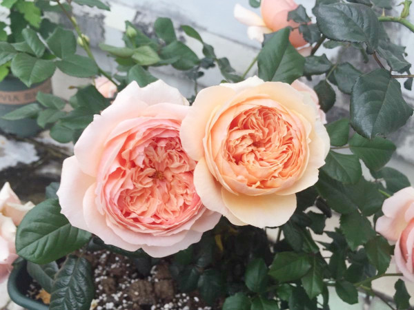 雖然真宙和朱麗葉是杏玫瑰,但它們的顏色實際上是完全不同的,有很大的色差,真宙的顏色是杏粉色,或橙粉色,顏色更均勻。朱麗葉的花顏色是橙色的,非常清爽活潑。顏色從中心外圍逐漸變淺,外花瓣甚至接近白色。相比之下,真宙更像是一個害羞的新娘,而朱麗葉是一個可愛的小女孩。