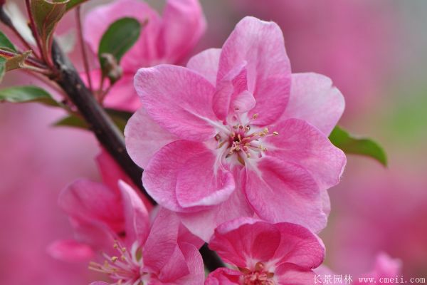 海棠在公園綠化中使用比較普遍,由于花期為夏季,是缺花時節,粉色花蕾十分好看,給酷熱的夏季帶來些許涼爽,也是私家園林觀賞的好植物材料。海棠能用在栽植花鏡,圖案,道路綠化,住宅綠化,醫院綠化等,見效快,緩苗期短暫,綠化效果好。除此之外其也也可以和不少種植物整合栽植,塑造各種風景,如與龍柏,美人梅,平枝旬子,草繡球,紫穗槐,果嶺草,萱草衛矛玉簪花香蒲國槐寶塔松刺松紫藤樹,扶芳藤,小葉黃楊球,龍柏造型,龍沙寶石,微型月季等在一塊栽植。