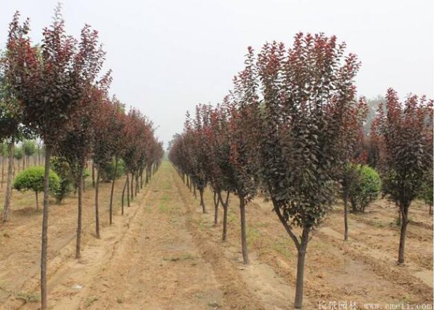 歡迎您訪問長景園林,基地自產自銷220畝紫葉李,2~12cm海量現貨發售。12公分紫葉李價格在800元左右,高度在4.2米、冠幅在3.5米左右。