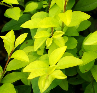 金葉女貞屬半常綠小灌木,株高可達(dá)1~2米,金葉女貞的葉片密集且分枝較多,葉片稍小、且較薄;