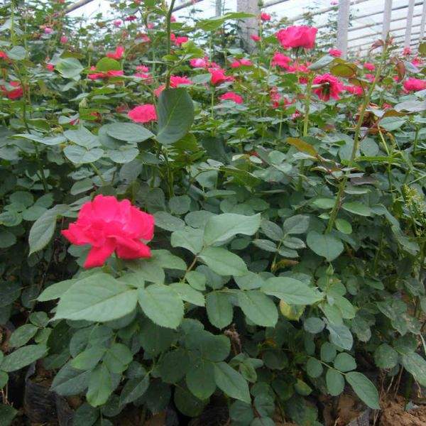 定植株距。大花月季栽培的株行距依栽培目的不同而異。用于育種或科研的品種圃常采用的株行距為150厘米×80 厘米。栽種以前需對幼苗進行一次修剪,剪掉損傷枝條、病枝、弱枝,受損或過長的根系也應(yīng)剪除。修剪后給傷口涂抹愈傷防腐膜,使其傷口快速愈合。