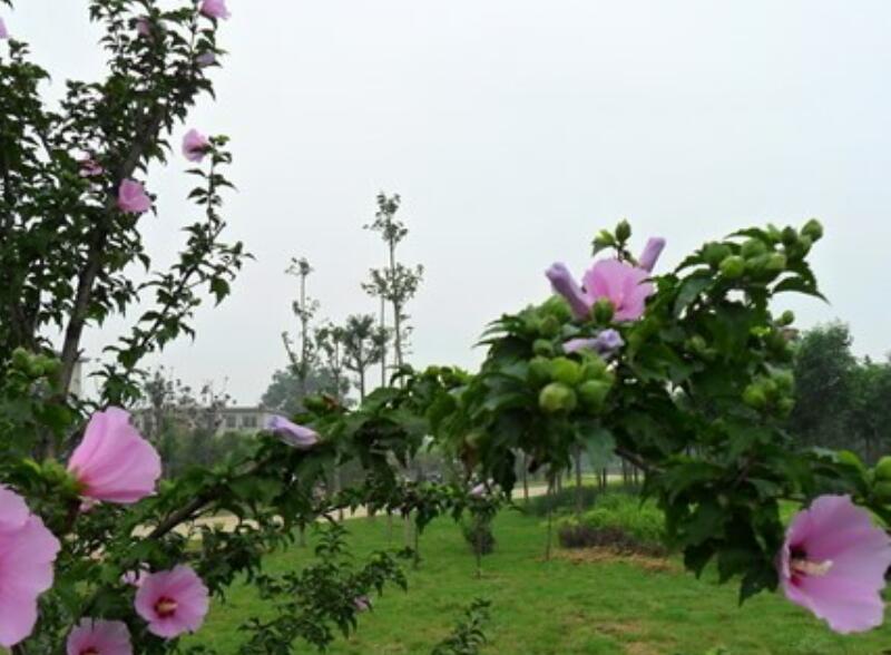 木槿花在生長期間,需要進行2-3次的培土與除草。第一次培土的話,在春季苗木萌發之前進行;第二次培土,在其枝條長出4-5片葉子的時候進行。