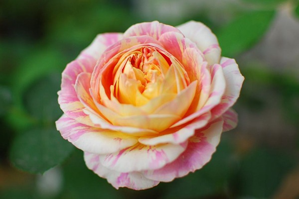莫奈是個可愛與獨特相結合的藤本月季品種。它植株高度大概在100-130厘米左右,冠幅寬度大概110厘米左右,花徑平均數大概在7厘米左右,花瓣數量大概在41枚瓣。莫奈開花的形狀是環形,它也是一款條紋月季,它是一種橙黃色及淡粉色相間的中大花徑的藤本月季,它擁有粉色、黃色和奶油色的三種柔和色彩,有著特別強的吸引力。莫奈花的顏色還會隨著氣溫變化,在高溫季節顏色會變淡甚至是消失、花朵變小,這是很多條紋月季的共性,但氣溫一旦轉涼它的花色就會恢復、條紋變得明顯,花朵變得飽滿。這三種顏色隨意地灑在每一片花瓣,顏色出乎意料的合拍,就像莫奈最為著名印象派繪畫中的一副一樣,不得不說這種花很神奇,充滿藝術魅力。