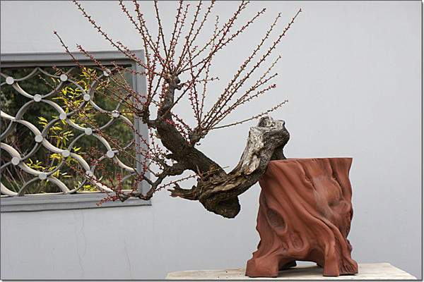 紅梅耐整形修剪,發枝力強,花芽形成甚易,故特適盆景栽培。盆栽紅梅澆水要適度,太多易落黃葉,太干易落青葉,都可造成大害。但新技長至所需長度(30厘米左 右)后,約在6月間要適當控制水分,并增施追肥,以促花芽之分化?;ㄇ跋戎糜诶涫蚁蜿柼?,含苞待放時移至室內觀賞?;ê髴M行強度短截,仍移至露地培養, 借以恢復元氣,增強長勢。