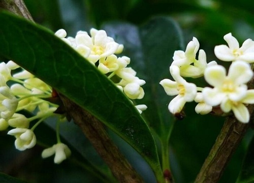 桂花高3-5米,最.高可達18米,樹皮灰褐色,小枝黃褐色,無毛,葉片革質,橢圓形,開花時花色多樣。