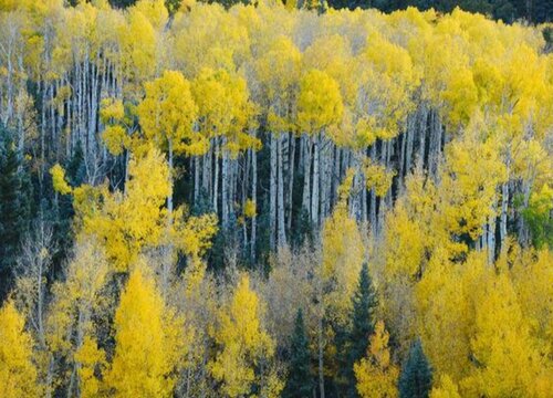 白楊樹的葉子的顏色隨著季節(jié)變化而變化,在初秋時期還是綠色的,而到了秋末冬初落葉前,它的葉片就變成黃色的。