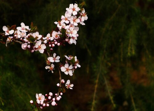 紅葉李花的顏色只有一種,那就是白色,紅葉李花的葉子是紫紅色的,一般花瓣的顏色中會白里透紅,會有淡淡的紅暈,花蕊的顏色一般是白色的。紅葉李花是有氣味的,又會一種淡淡的清香,開花寓意著幸福和快樂,象征著積極向上的人生態度。